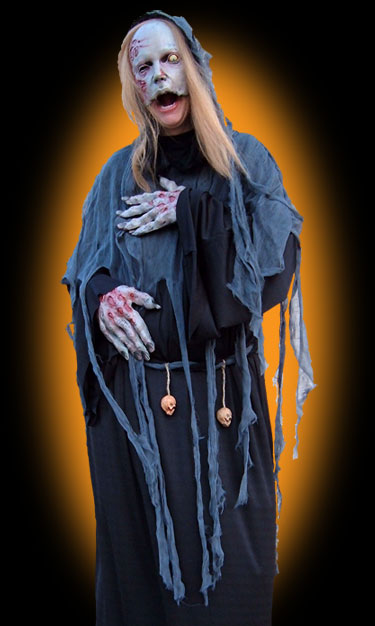 What's a Halloween party without a pale, cadaverously shriveled Ghoul spilling maggots from one eye socket? Not a very scary one, that's for sure! Super creepy!